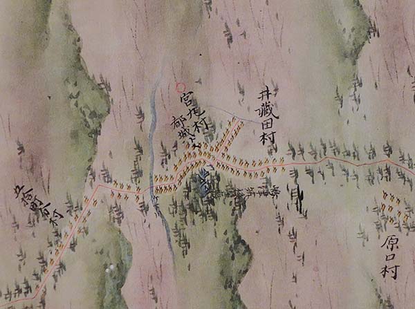 また、伊能忠敬と同時期に幕府の道中奉行所が実測して作成した重要文化財「東海道分間延絵図」から品川宿から川崎宿の部分が展示されています。伊能忠敬は享和三年二月二十五日に品川宿の本陣で昼食をとり、第四次測量に出立します。その本陣も描かれています。