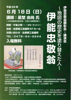 佐原の伊能忠敬翁顕彰会主催で、6月18日午後2時から佐原商工会議所4階ホールで星埜由尚特別顧問による講演会「地図の歴史を塗り替えた人~伊能忠敬翁」が開催されます。(詳細はパンフレットをご覧ください。)