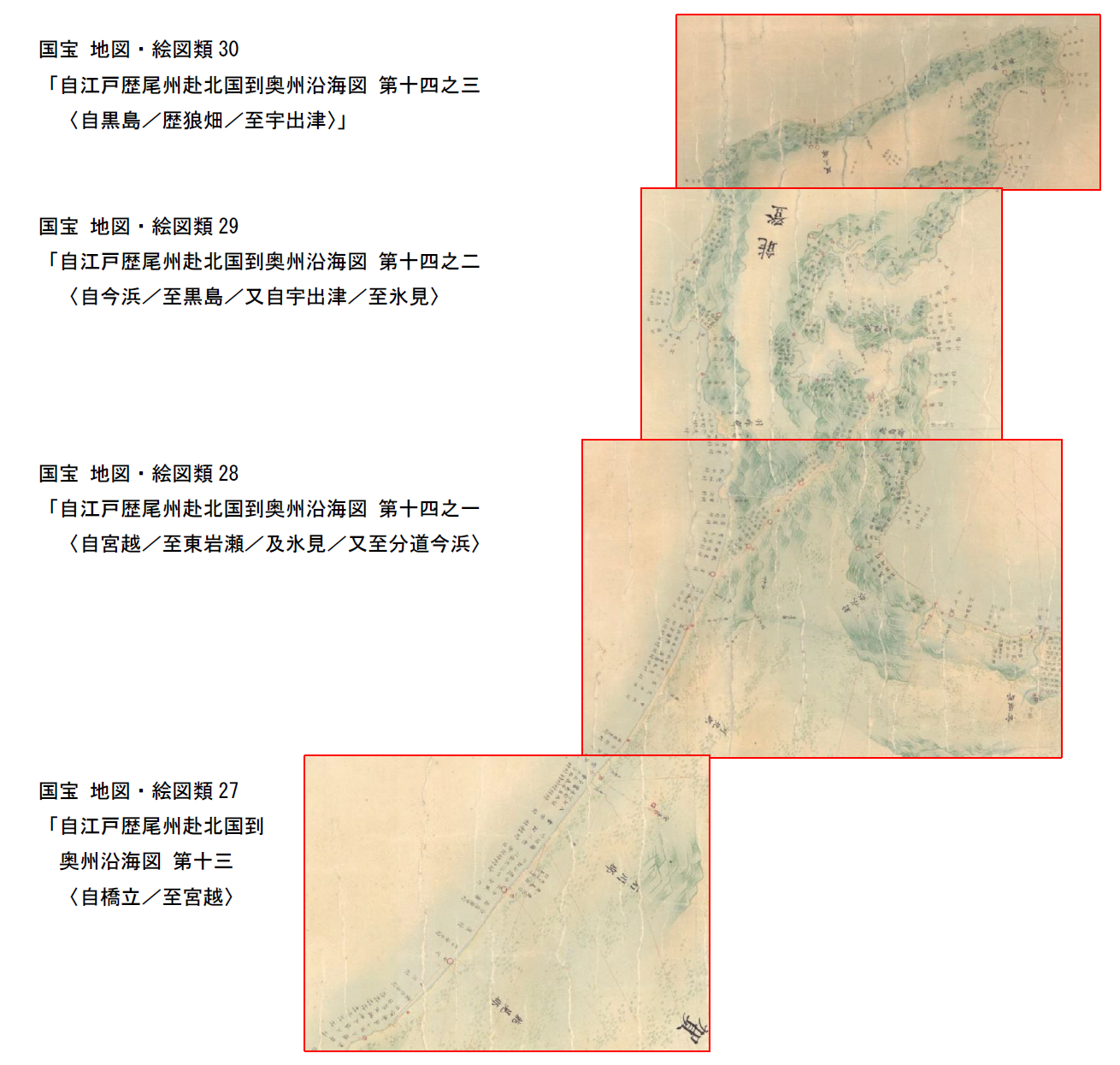 千葉県香取市佐原の伊能忠敬記念館では、第90回収蔵品展の後期の展示が始まりました。北陸地方の4鋪の接合状況を、国土地理院HPの古地図コレクションの「伊能中図・中部近畿」で示したものです。